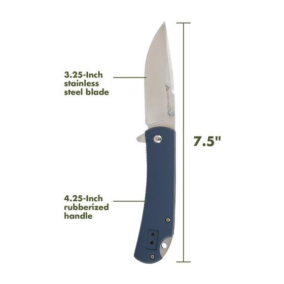 The Ozark Trail 7.5-Inch Folding Knife in Blue is a versatile, durable tool designed for a variety of outdoor tasks. Featuring a 3.25-inch stainless steel blade, it delivers reliable performance whether you’re camping, fishing, hiking, or tackling daily tasks. The vibrant blue handle is ergonomically designed for a secure, comfortable grip, ensuring ease of use in any condition. The blade folds smoothly into the handle for safe and convenient storage, making it an excellent choice for anyone in need of a reliable pocket knife. With a sleek design and sturdy build, it’s a great addition to your gear collection.