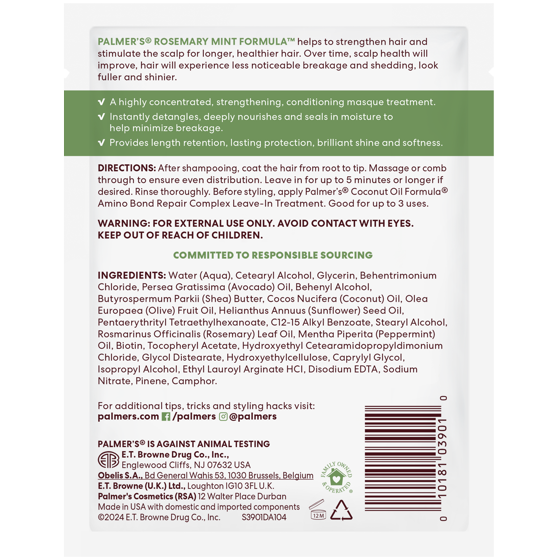 Palmer's Rosemary Mint Formula Strengthening Pack Conditioner; Hydrating, Protecting, and Stimulates Growth 2.1 fl. oz