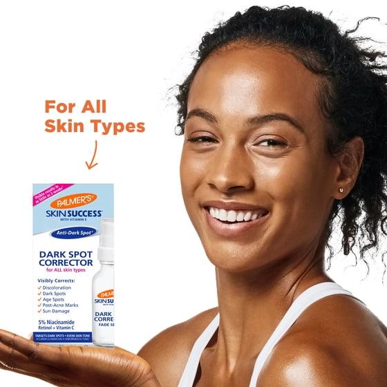 Palmer's Skin Success Dark Spot Corrector Fade Serum is concentrated to deliver active ingredients that effectively fade dark Spots, age spots, sun damage and discoloration, revealing your brightest, most radiant and uniform complexion.
