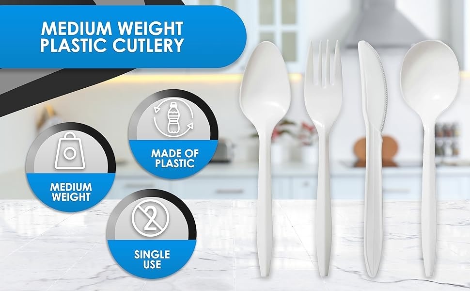 Elevate your home, party, or catering supplies with this practical 1000-count plastic silverware set that caters to a large number of guests in a single pack. Say goodbye to hours of dishwashing and hello to the convenience that our disposable plastic cutlery brings!