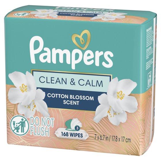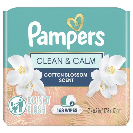 - 168 Wipes in 3 Packs of Pampers Wipes, Clean & Calm, Cotton Blossom Scent