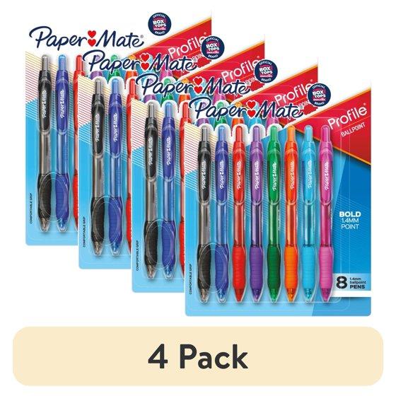 (4 pack) Paper Mate Profile Ballpoint Pen, Retractable, Bold 1.4 mm, Assorted Ink and Barrel Colors, 8/Pack