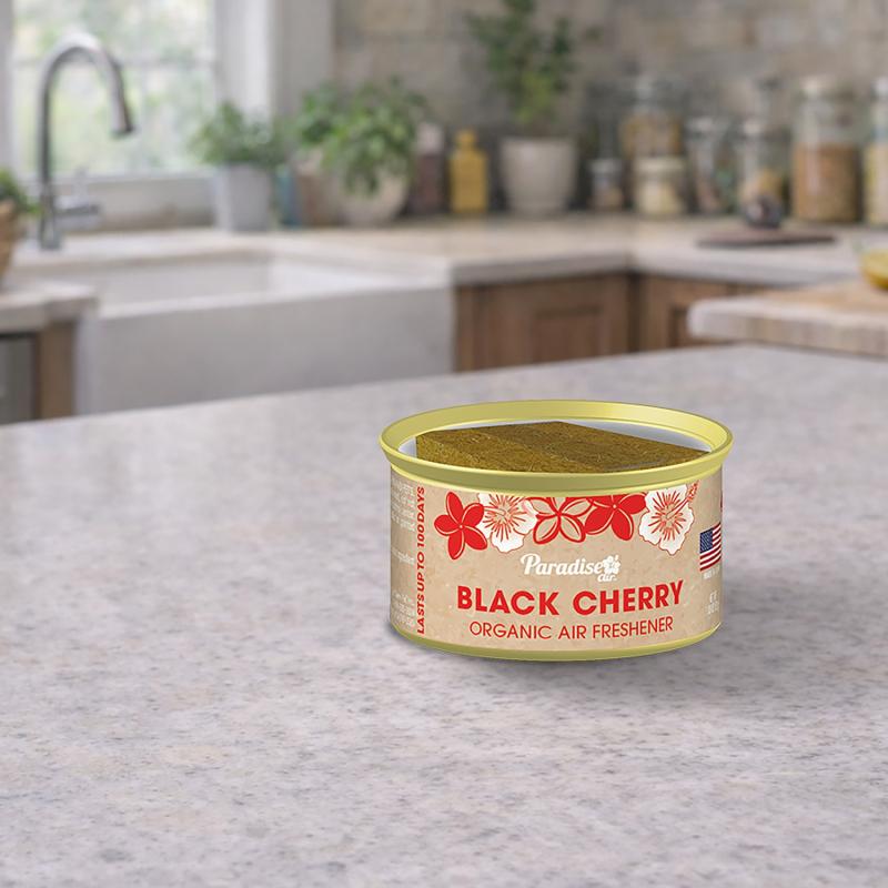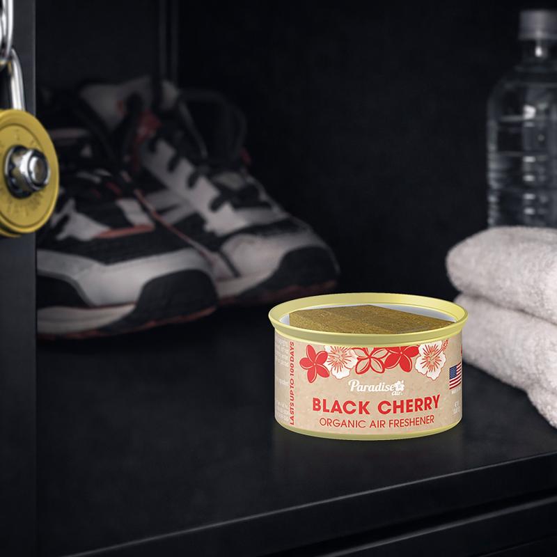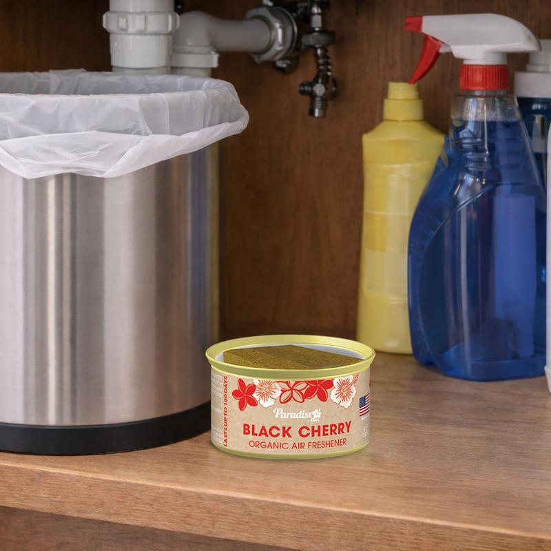 Paradise Air 100 Day Organic Can Air Freshener will make your home, bathroom, office or car smell like paradise. These long lasting Organic Cans contain 33% more fragrance oil than the 60 day organic cans and pack a punch for up to 100 days. Simply open the can to find your paradise. Use them in your kitchen, bathroom, bedroom, closet, laundry room, office, patio, garage, work shed, trash can, locker, car, truck, RV, boat, dune buggy or any space that stinks. Inside each can are blocks of recycled plant fibers that are soaked in highly concentrated fragrance oil. Find your Paradise while enjoying Black Cherry Organic Can Air Fresheners.