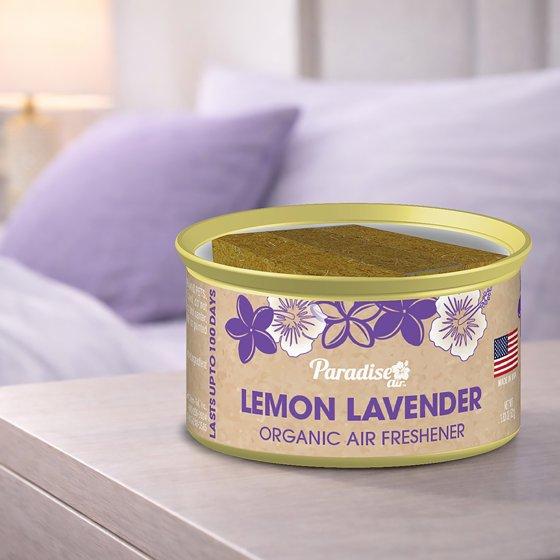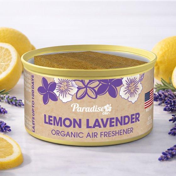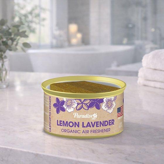 Paradise Air 100 Day Organic Can Air Freshener will make your home, bathroom, office or car smell like paradise. These long lasting Organic Cans contain 33% more fragrance oil than the 60 day organic cans and pack a punch for up to 100 days. Simply open the can to find your paradise. Use them in your kitchen, bathroom, bedroom, closet, laundry room, office, patio, garage, work shed, trash can, locker, car, truck, RV, boat, dune buggy or any space that stinks. Inside each can are blocks of recycled plant fibers that are soaked in highly concentrated fragrance oil. Find your Paradise while enjoying Lemon Lavender Organic Can Air Fresheners.