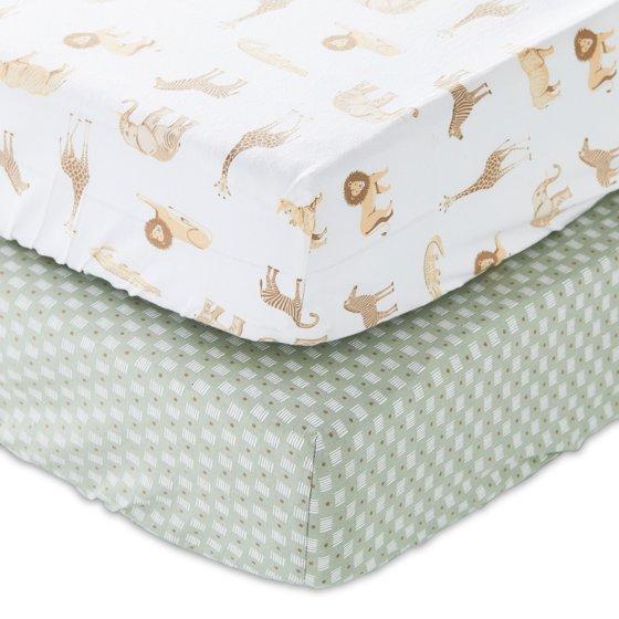 Parent's Choice 2-Piece Cotton Fitted Crib Sheets for Baby Boys and Girls, Safari