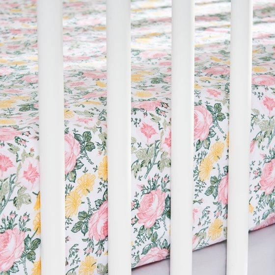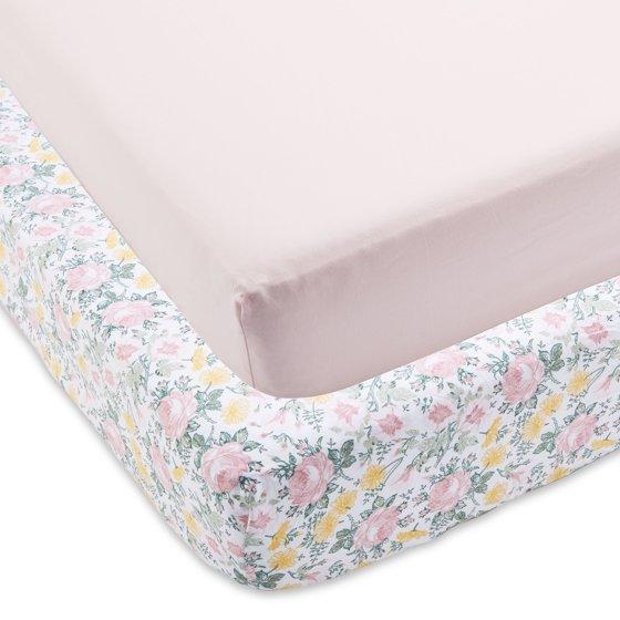 Parent's Choice 100% Cotton Fitted Crib Sheets For Baby Girls, Pink Floral, 2 Pack, Crib Bed