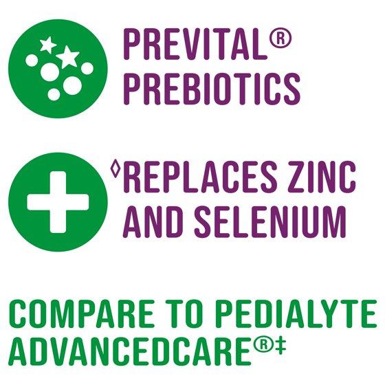 - WITH PREBIOTICS: Our Parent's Choice Advantage® Care electrolyte solution includes Prevital® Prebiotics to help promote digestive health. Compare to Pedialyte ADVANCEDCARE®