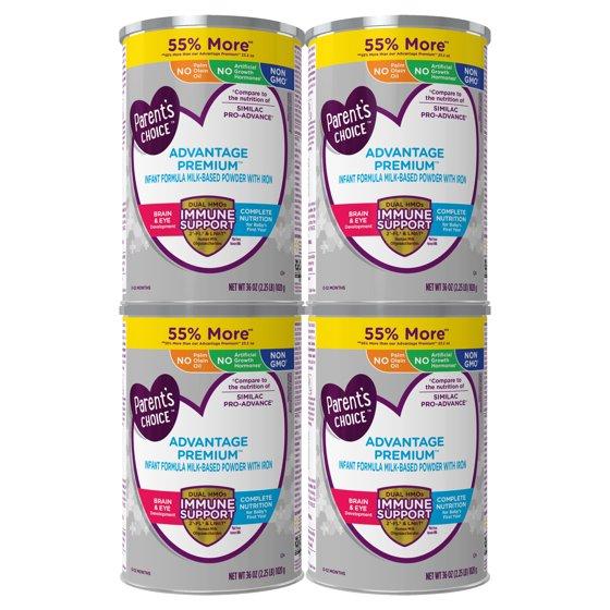 Parent's Choice Advantage Premium Baby Formula, 36 oz, 4 Pack
