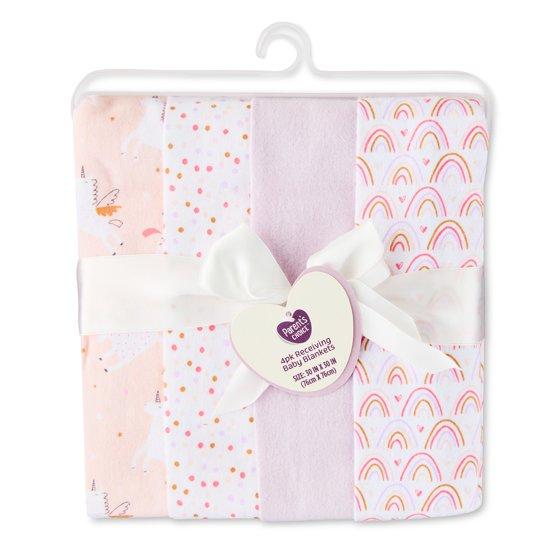 Parent's Choice Cotton Flannel Receiving Blankets for Baby Girls, Rainbow, 4 Pack
