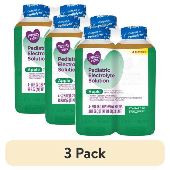 (3 pack) Parent's Choice Electrolyte Solution, Apple, Dye-Free, for Kids and Adults, 22 oz, 4 Count