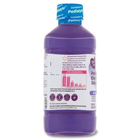 Compare to Pedialyte. Parent's Choice Grape Electrolyte Solution is designed to help prevent dehydration and quickly restores fluids and electrolytes for children and adults more effectively than sports drinks, sodas, juices and water. No artificial flavors, sweeteners or synthetic colors. For ages one year to adults. Pedialyte is a registered trademark of Abbott Laboratories. This product is not manufactured or distributed by Abbott Nutrition, Abbott Laboratories, the distributor of Pedialyte.