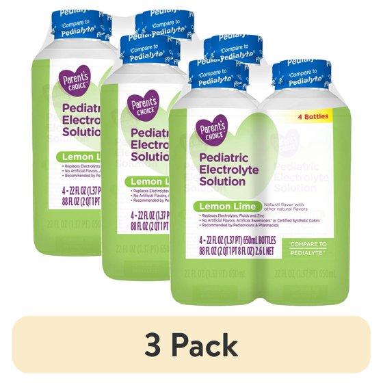 (3 pack) Parent's Choice Electrolyte Solution, Lemon Lime, Dye-Free, for Kids and Adults, 22 oz, 4 Count