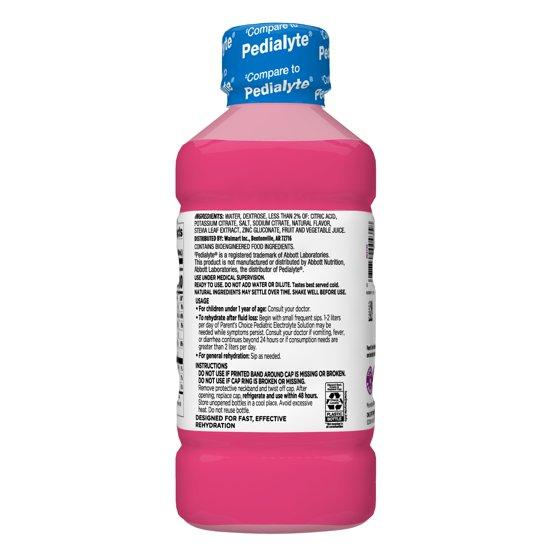 Parent's Choice Pediatric Electrolyte Solution restores electrolyte balance by quickly replenishing fluids, zinc and electrolytes for fast, effective rehydration. This electrolyte solution helps prevent mild to moderate dehydration in children and adults, and contains more electrolyte sodium compared to leading sports drinks, soda, 100 percent apple juice and water. It is formulated with prebiotics to help promote a healthy digestive system and features a natural strawberry flavor with other natural flavor that is great for both kids age 1+ and adults. This product does not contain artificial flavors, sweeteners or synthetic colors. Recommended by pediatricians and pharmacists, you can be sure you're giving your child the best with Parent's Choice Pediatric Electrolyte Solution. Comes in a 33.8 fl oz bottle.