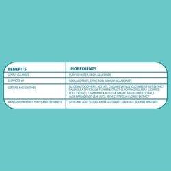 Purified Water, Gluconic Acid, Sodium Benzoate, Citric Acid, Sodium Citrate, Tetrasodium Glutamate Diacetate, Glycerin, Decyl Glucoside, Rosa Centifolia Flower Extract, Sodium Bicarbonate, Tocopheryl Acetate, Cucumis Sativus (Cucumber) Fruit Extract, Calendula Officinalis Flower Oil, Glycyrrhiza Glabra (Licorice) Root Extract, Chamomilla Recutita (Matricaria) Flower Extract, Aloe barbadensis Leaf Extract.
