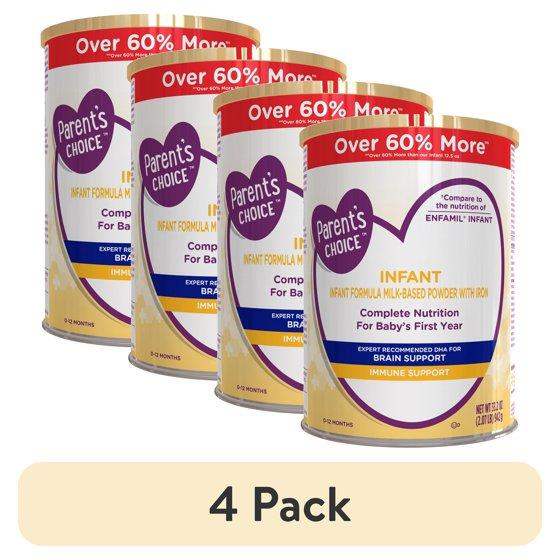 (4 pack) Parent's Choice Infant Formula Milk-Based Powder with Iron, 33.2 oz
