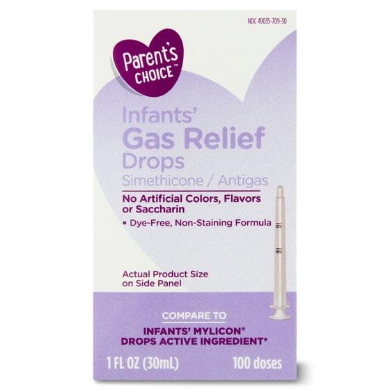 Gently and reliably relieve baby's tummy pain from gas with Parent's Choice Gas Relief Simethicone Drops. Gas is usually caused when babies take in air while feeding or crying and can cause discomfort that leads to crankiness and fussiness. Until your baby's digestive system is fully developed, our simethicone drops helps to break down the gas bubbles in your baby's tummy to provide gentle relief in minutes. They are safe and effective for infants and newborns and can make your little one feel better in a mild and timely manner. Our gas relief drops have no alcohol, saccharin or artificial flavors. They are dye free and use a non-staining formula to protect baby's clothes. Help to speed up your baby's natural process of getting rid of gas with Parent's Choice Gas Relief Simethicone Drops. Parent's Choice provides parents with baby and toddler products you need at a price that won't push your budget over the edge. We offer everything you need from bath time to bedtime and every time in between, all with the high quality we know your little one needs. Parent's Choice is conveniently available online and in Walmart stores nationwide, allowing you to stock up, save money and live better.