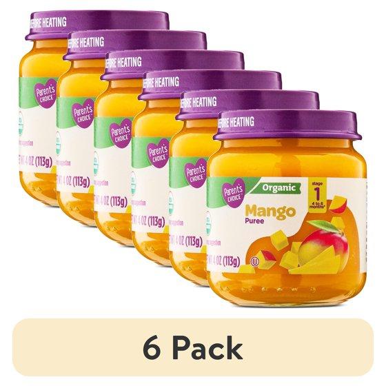 (6 pack) Parent's Choice Organic Stage 1 Baby Food, Mango, 4 oz Jar