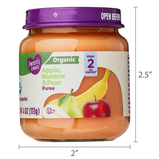 Parent's Choice Organic Stage 2 Baby Food, Apple. Banana, and Pear Puree, 4 oz Jar