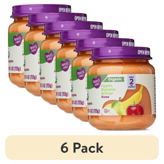 (6 pack) Parent's Choice Organic Stage 2 Baby Food, Apple. Banana, and Pear Puree, 4 oz Jar