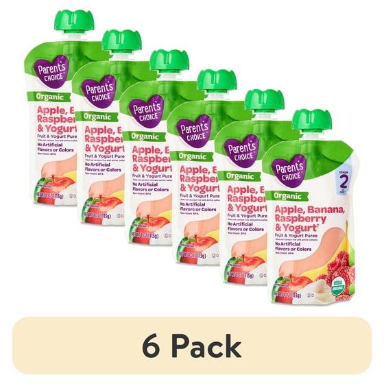 (6 pack) Parent's Choice Organic Stage 2 Baby Food, Apple, Banana, Raspberry Yogurt, 4 oz Pouch