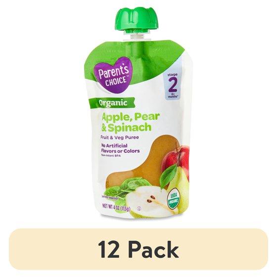 (12 pack) Parent's Choice Organic Stage 2 Baby Food, Apple Pear Spinach, 4 oz Pouch