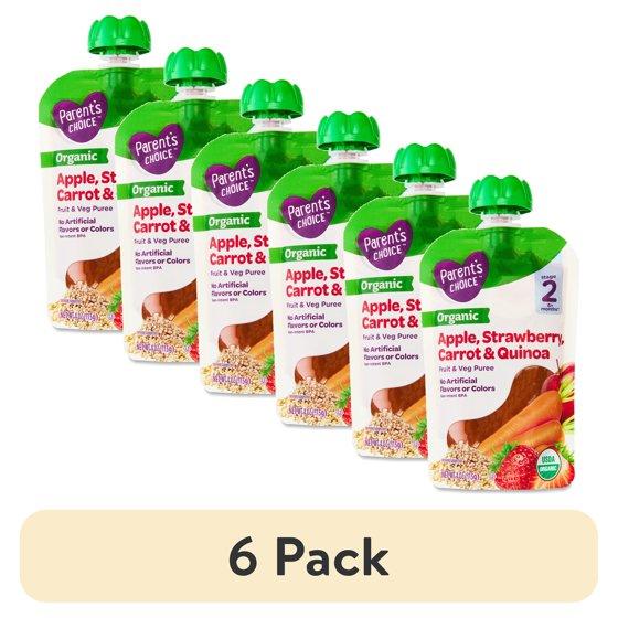 (6 pack) Parent's Choice Organic Stage 2 Baby Food, Apple, Strawberry, Carrot, and Quinoa Puree, 4 oz Pouch