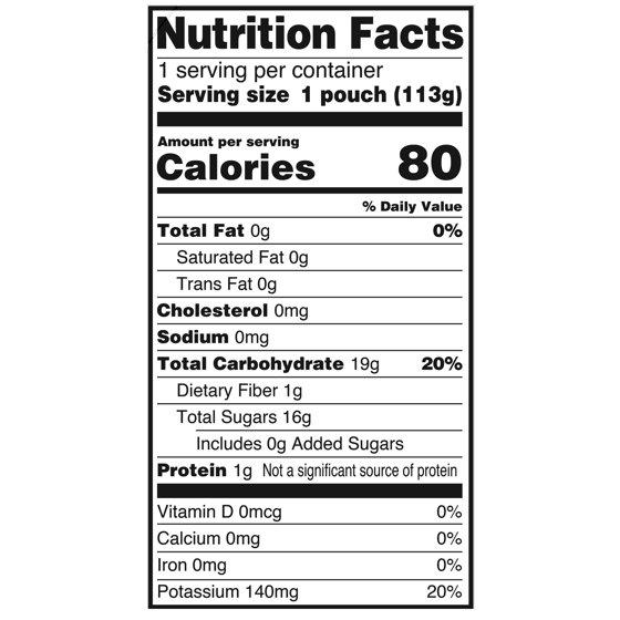 DO NOT MICROWAVE OR BOIL POUCH. DO NOT USE IF CAP SEAL IS BROKEN OR POUCH IS DAMAGED OR SWOLLEN. TO DECREASE THE RISK OF CHOKING: CHILDREN SHOULD BE SEATED UPRIGHT. DO NOT LEAVE CHILDREN UNATTENDED WHILE FEEDING. KEEP PLASTIC CAP AWAY FROM CHILDREN