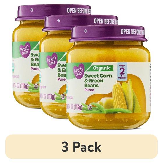 (3 pack) Parent's Choice Organic Stage 2 Baby Food, Sweet Corn & Green Beans, 4 oz Jar