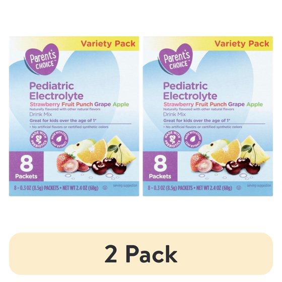 (2 pack) Parent's Choice Pediatric Electrolyte Drink Mix, Variety Pack, 2.4 oz (8 Pack)