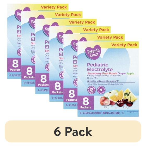 (6 pack) Parent's Choice Pediatric Electrolyte Drink Mix, Variety Pack, 2.4 oz (8 Pack)