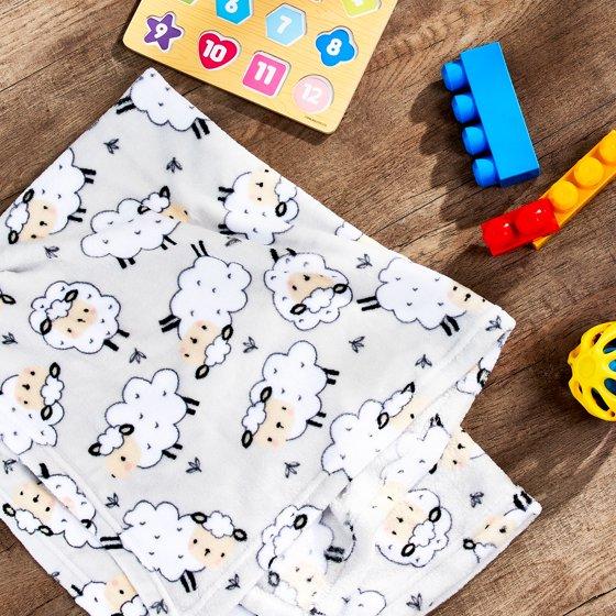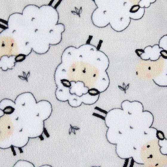 - Infant blanket features an allover print design of black and white sheep on a gray background with hemmed edge - perfect for both baby boys and girls