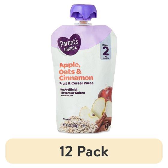(12 pack) Parent's Choice Stage 2 Baby Food, Apple, Cinnamon, and Oats Fruit and Cereal Puree, 4 oz Pouch