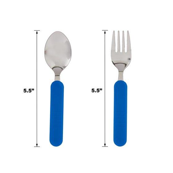 Parent's Choice Toddler Fork and Spoon Set Silver Stainless Steel with Blue Plastic Handle