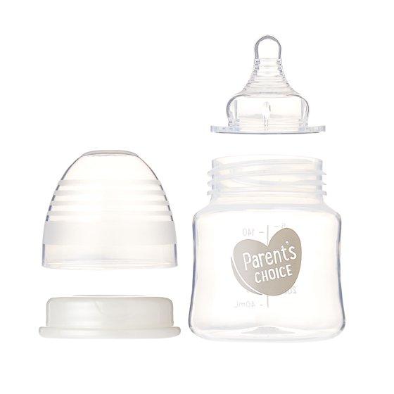 When transitioning from breastfeeding to bottle feeding, Parent's Choice 5 fl oz Slow Flow Wide Neck Bottles are ideal for your little one. Our wide-neck bottles feature a soft, vented silicone nipple shaped to mimic a breast to create a more natural feeding experience and ease the transition from breast to bottle. We have specially designed our bottles to provide a flow rate that is similar to breastfeeding, decreasing air intake, spit-up, burping, and gas. Parent's Choice 5 fl oz Slow Flow Wide Neck Bottles will make your baby's transition easier for them, and for you.