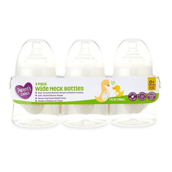(4 pack) Parent's Choice Wide Neck Bottles, 3 Pack, 5 fl oz