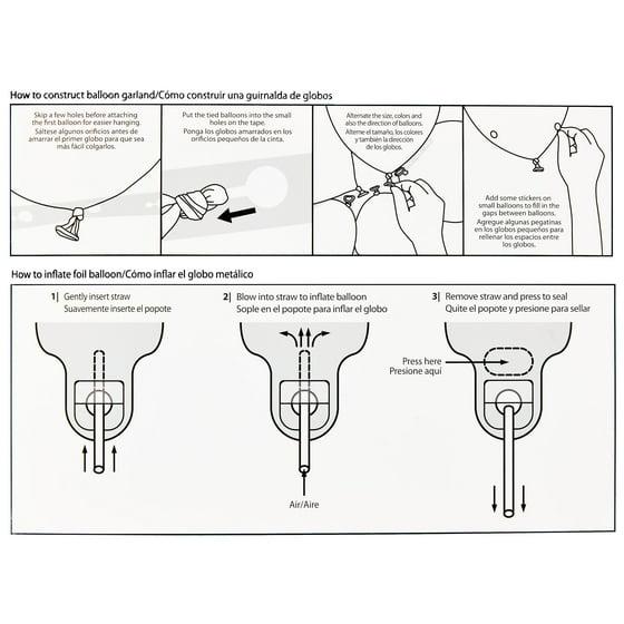 - Includes 20 (9") latex balloons, 21 (12") latex balloons, 4 foil balloons, balloon garland tape (8.2'), 2 paper straws, and adhesive dots