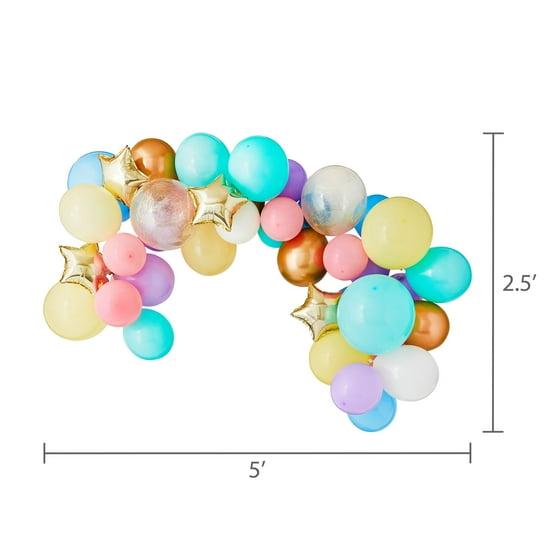 - Features a rainbow of pastel latex balloons, gold foil star balloons, and gold tinsel balloons