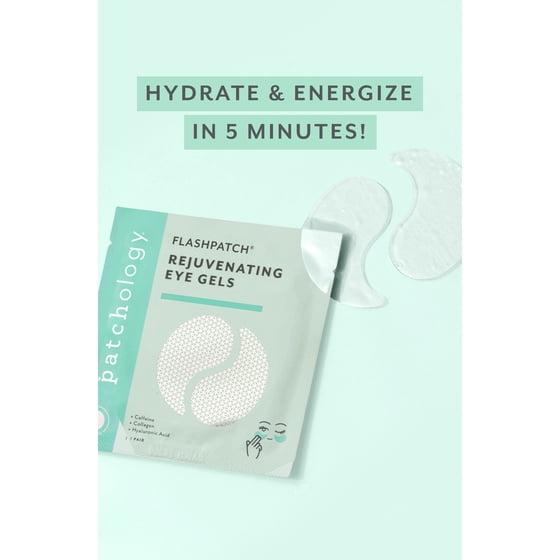 Patchology FlashPatch Rejuvenating Under Eye Face Mask Gels Day and Night Use, Dryness. Enter the fast fix for tired eyes, featuring Caffeine, Hydrolyzed Collagen and other essential ingredients (to look like you got your full 8 hours every day in just 5 minutes!) These biodegradable hydrogel eye masks stay put, so you get these ingredients where you need them most. And they cooling, soothing and refreshing added bonus for the perfect perk-me-up.