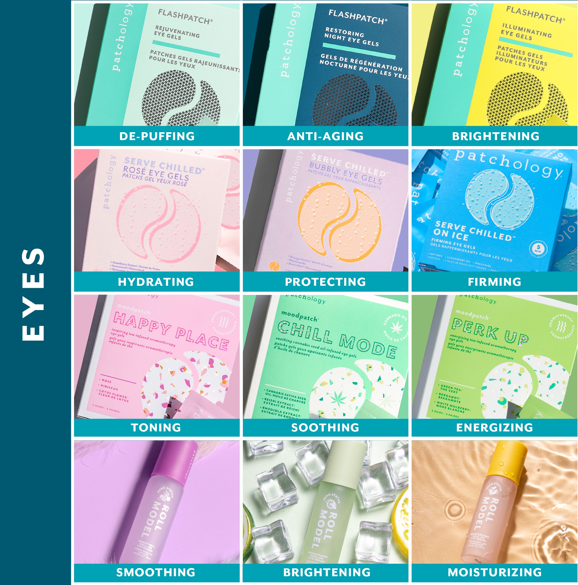 - Patchology Moodpatch Happy Place Eye Gels, Puffiness and Wrinkles Reducer. Rose: hydrates skin. Hibiscus: antioxidant that provides a youthful glow from within. Lotus flower: softens and tones skin coconut extract: super hydrating.