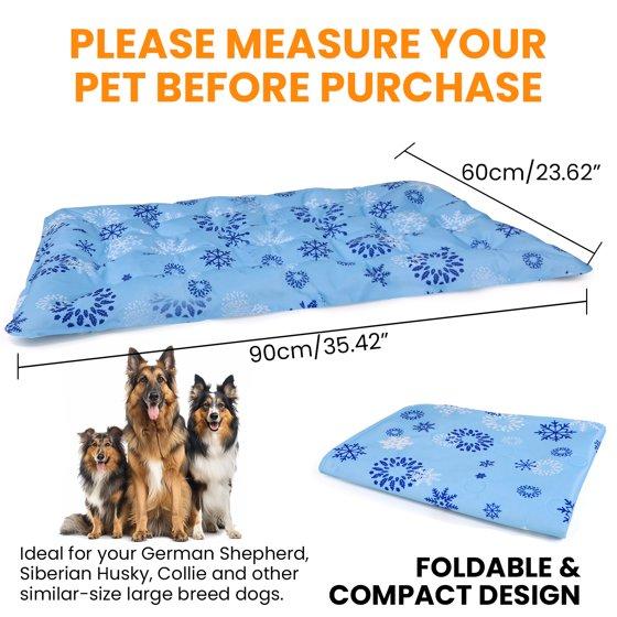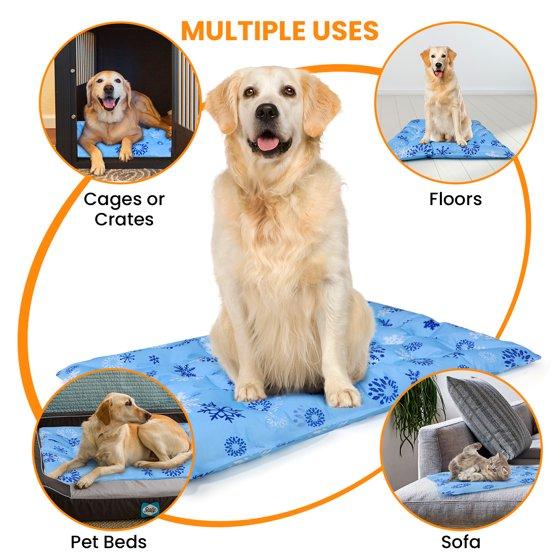 - [Portable & Versatile] This dog cooling blanket is ideal for elevated dog beds, crates, kennels, car seats or simply lay flat on the floor. The easy-fold design makes storage and travel effortless. It can be also used as a seat cushion or a pillow. This multi-purpose mat is suitable for pets as well as human beings..