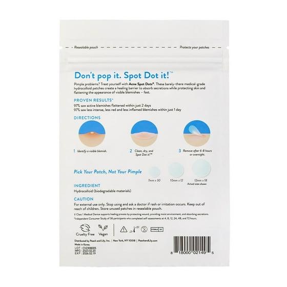 - Fast-acting, dot-shaped acne patches that actively absorb secretions for visibly smaller blemishes