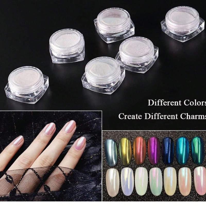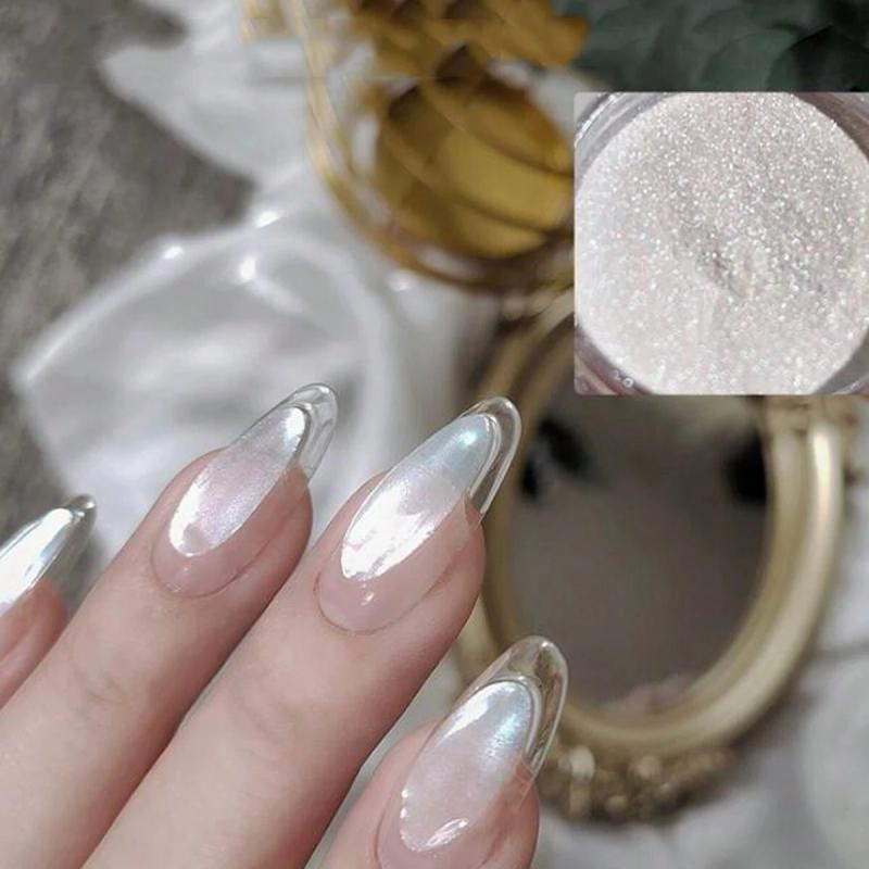 Pearl White Nails Glitter Dust Chrome Y2 1Box Moonlight White Chrome Powder Pigment For Glazed Donut Nail Art, Moonlight Powder Mirror Effect Glitter 1pc Eyeshadow Sticks DIY Nail Charms Nail Gems Nail Supplies
