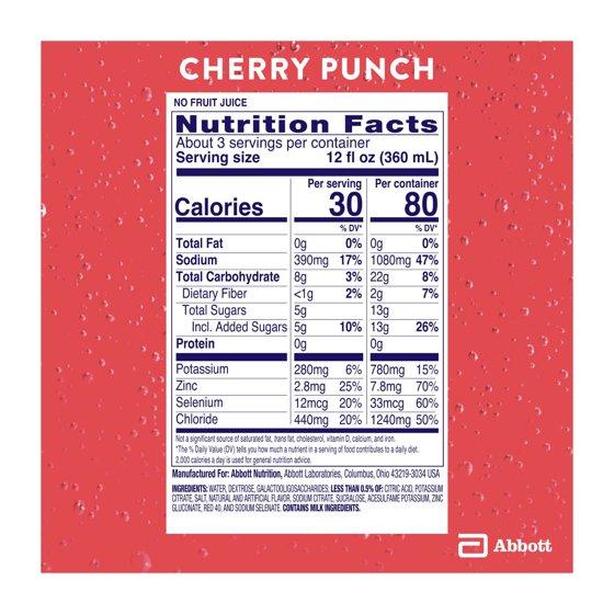 Water, Dextrose, Less than 2% of: Galacto-oligosaccharides, Citric Acid, Natural And Artificial Flavor, Potassium Citrate, Salt, Sodium Citrate, Sucralose, Asesulfame Potassium, Zinc, Gluconate And Red 40. Contains Milk Ingredients.