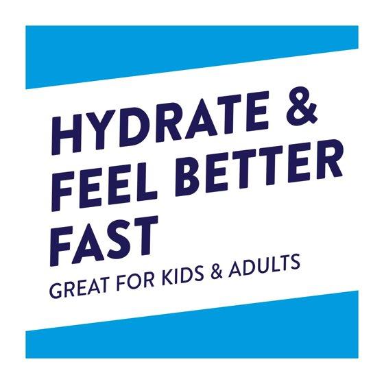 - Has an optimal balance of electrolytes and glucose for fast rehydration in kids and adults