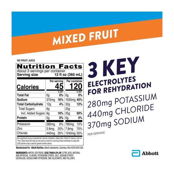 - Pedialyte Electrolyte Drink, For Kids & Adults, Mixed Fruit, 1 Liter