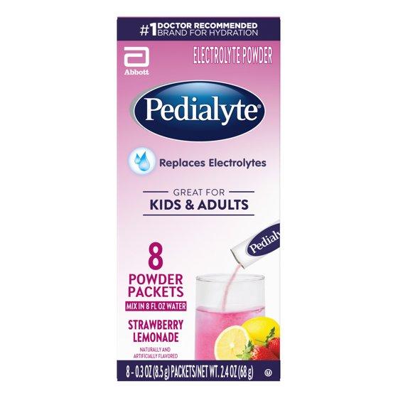 - Pedialyte Electrolyte Powder, Strawberry Lemonade, 8 Powder Packets