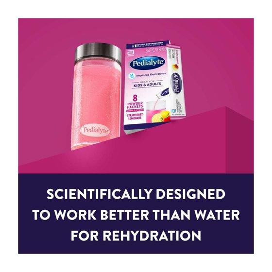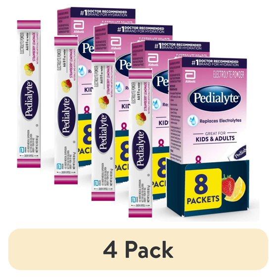 (4 pack) Pedialyte Electrolyte Powder Packets, Strawberry Lemonade, 8 Count