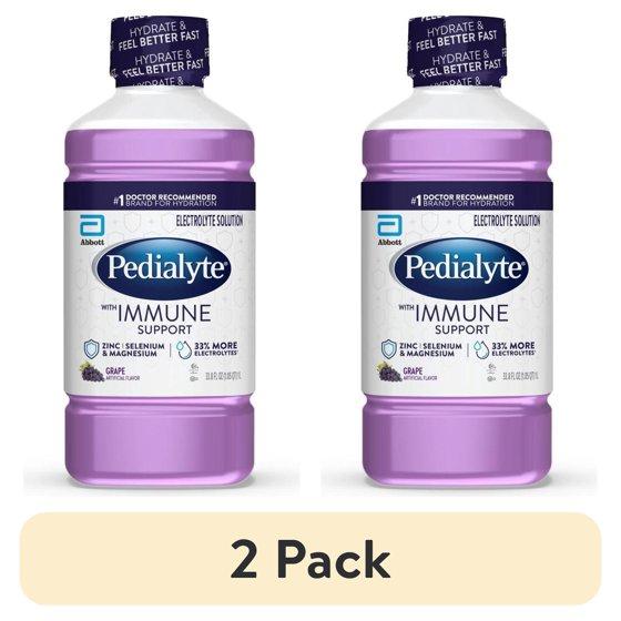 (2 pack) Pedialyte with Immune Support Electrolyte Solution, Grape, 1 Liter