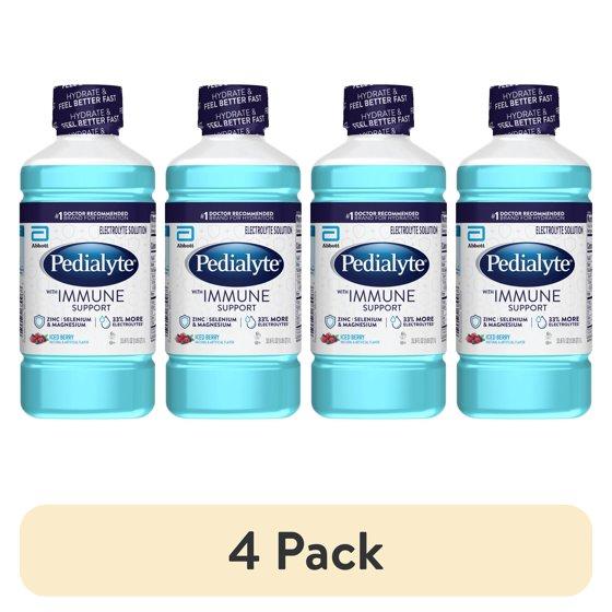 (4 pack) Pedialyte with Immune Support Electrolyte Solution, Iced Berry, 1 Liter