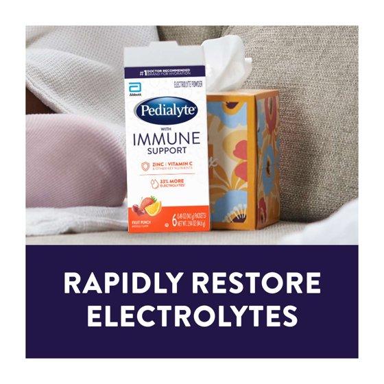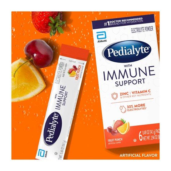 - Pedialyte with Immune Support, Fruit Punch, Powder Packets, 6 Count